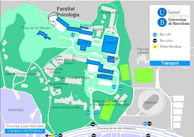 There is a bus line that links the above services of public transportation and the Facultat de Psicologia (the second and last bus stop).